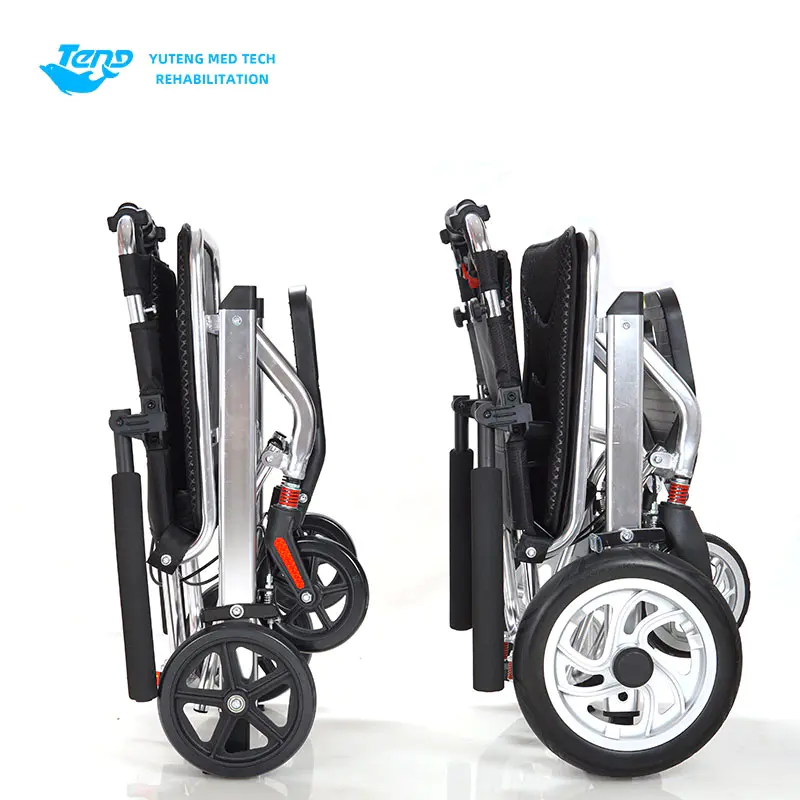 Yuteng Medical Series produktuak: gurpildun aulki tolesgarri tolestura, zaintzeko eskuzko gurpildun aulkia, eskuzko gurpildun aulkia. Aluminiozko aleazio markoa; PVC larruzko eserlekuko atzeko kuxin; Oinen laguntza finkoa; Hainbat konfigurazio pertsonaliza daitezke.