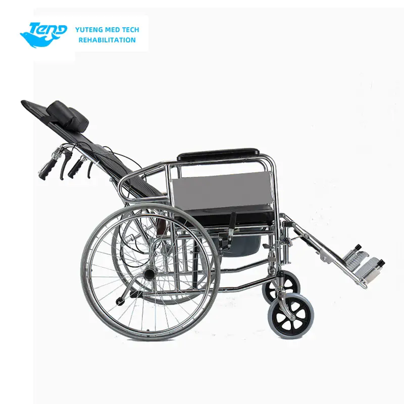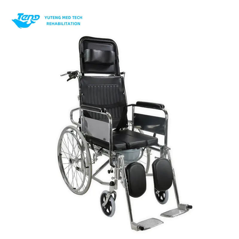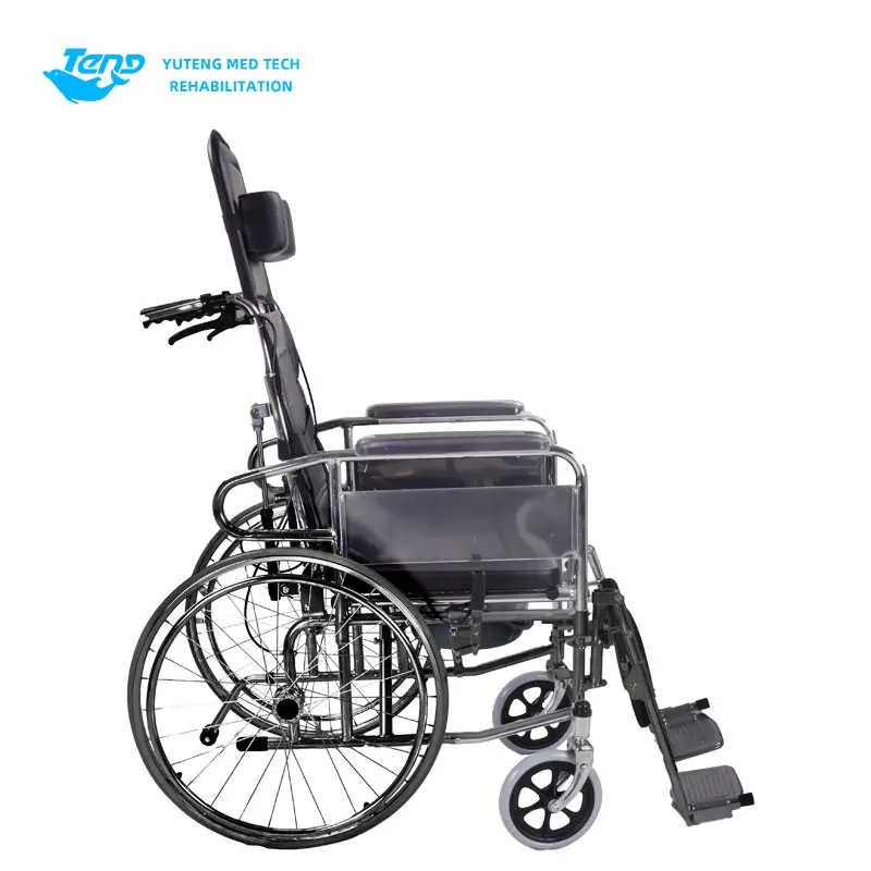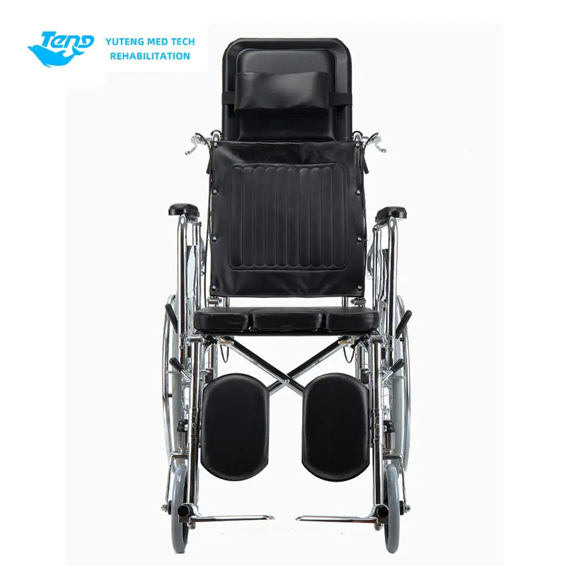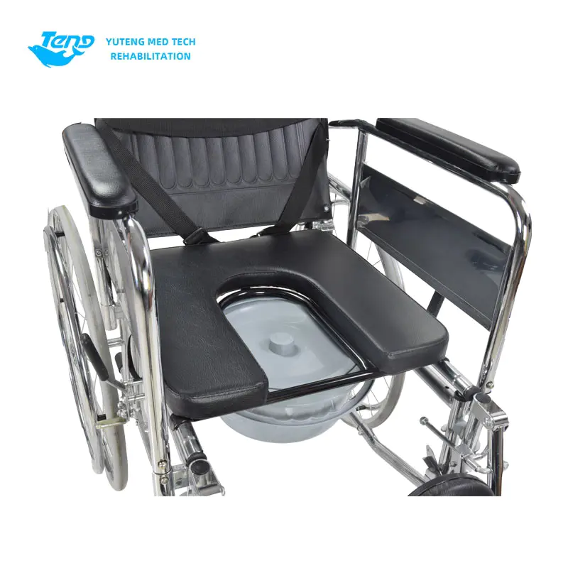 Yuteng Medical Series produktuak: Indar handiko altzairuzko eskuliburua gurpildun aulkia burdina markotutako gurpildun aulkia da, iraunkortasun hobetzeko diseinatua. Elektrotizatutako marko tolesgarria da, buruko buruko bat buruko bat buruko buruko buruko buruko buruarekin, etzanda erosoak, besoak desmuntagarriak, hankako euskarriak, altzairu herdoilgaitzezko alboko guardia plakak, balazta bikoitzeko sistemak eta komode bat hartzeko hazten den eserlekua.